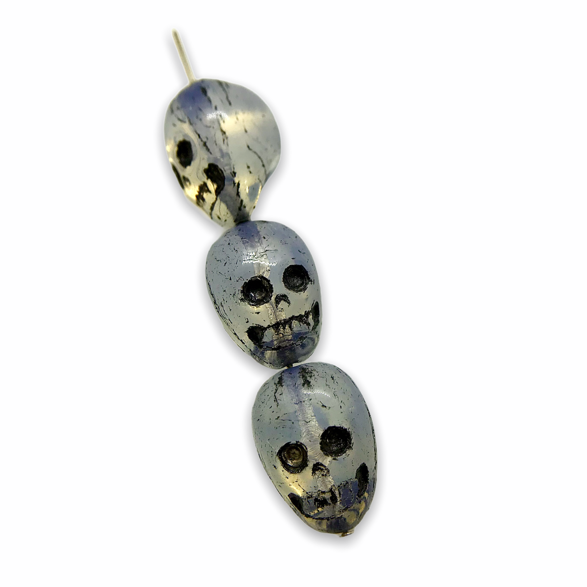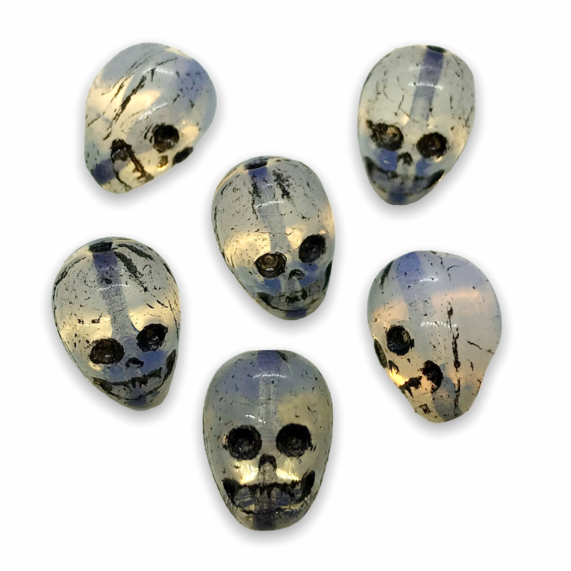 Czech glass skull beads 6pc blue white opaline black 14mm