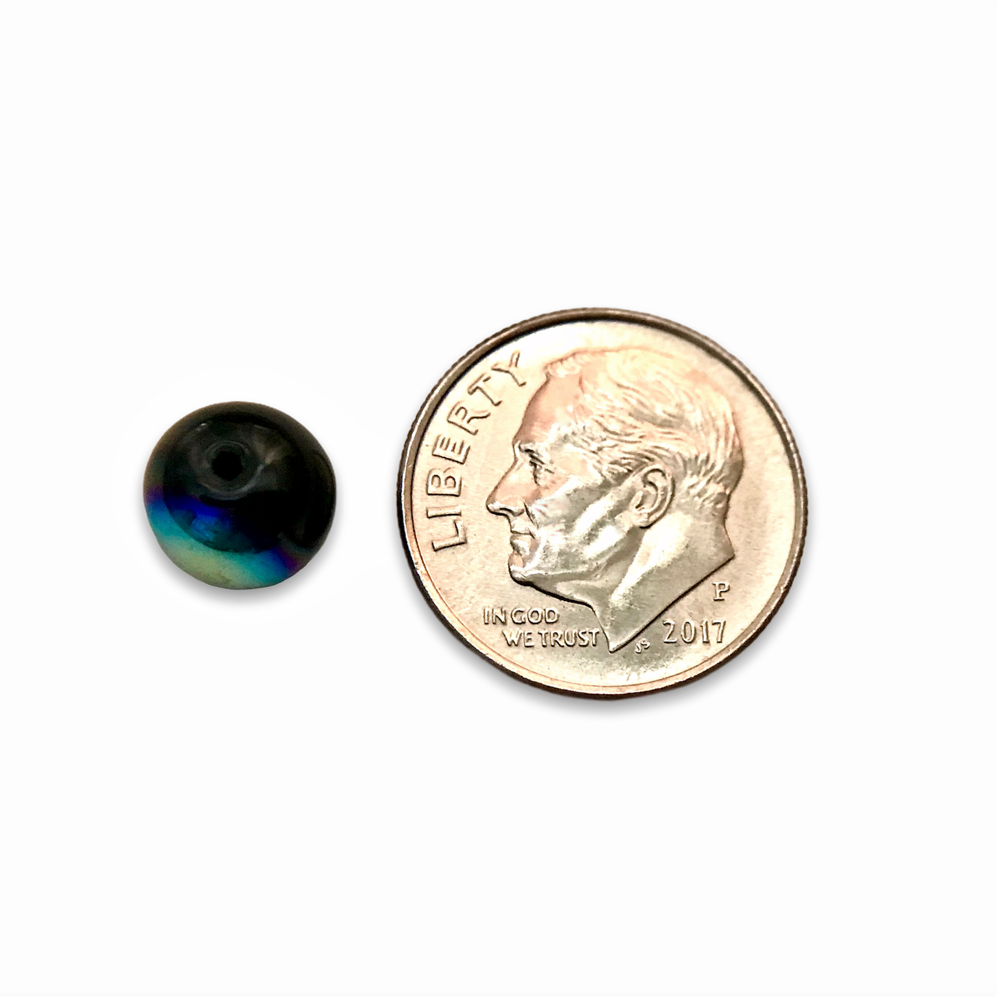 Czech glass 8mm round druk beads in opaque jet black with AB on 1/2. Sold per lot of 30 pieces.